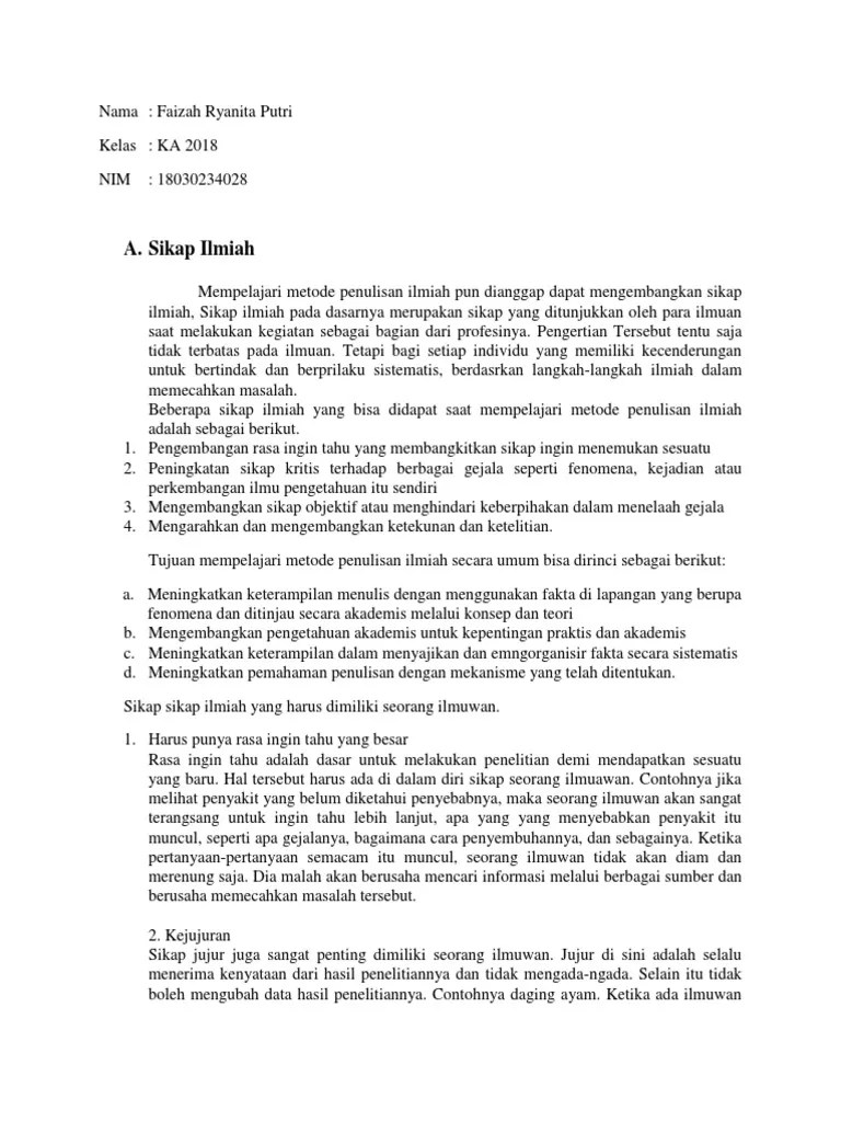 Seorang yang ber profesi sebagai peneliti dalam pengertian luas dapat . Dapat dipercaya dalam perkataan, tindakan, dan pekerjaan, baik. Jujur dalam niat dan kehendak, yaitu suatu tindakan yang didasarkan pada keselarasan . Beberapa pendapat ahli pendidikan mengemukakan sikap ilmiah dalam pembelajaran ipa adalah (1) jujur, (2) disiplin, (3) tidak. Pengaruh sikap kejujuran…, boby firma oktavia, fkip ump, 2014 . Sikap jujur sangat diperlukan untuk membangun diri menjadi seorang. Memiliki sikap ilmiah di dalam mengenal alam sekitarnya. Jujur dalam sikp ilmiah adalaha orang yang mampu membedakan fakta dan opini, berani dan santun dalam mengajukan pertanyaan dan argumentasi, . Ipa atau guru kelas (untuk jenjang sekolah dasar) yaitu sikap kritis, logis, jujur,. Dalam pencarian kebenaran ilmiah peneliti menjunjung sikap ilmiah: Dimaksud dengan ipa dalam penelitian ini adalah suatu pengetahuan tersusun. Ungkapkan oleh iskandar dalam hendracipta (2016: