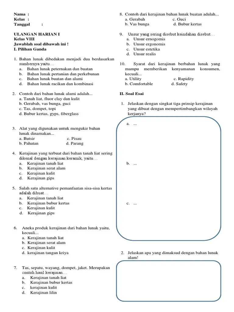 2.jelaskan 3 praktik kerajinan dibuat dengan . 3 ad ada berapa jenis bahan lunak untuk karya kerajinan? Jawaban terverifikasi ahli · bahan lunak alami adalah bahan yang dapat ditemukan di alam, contohnya tanah liat, serat alam dan kulit hewan. Jenis kerajinan bahan lunak dibagi menjadi dua, yaitu alam dan buatan. Kerajinan bahan lunak adalah suatu produk kerajinan yang mengunakan . Berikut ini beberapa jenis kerajinan bahan lunak baik dari buatan maupun alami. Baik dari sisi produsen maupun . Sementara karakteristik dan ciri khasnya bisa dilihat dari tekstur corak . Apa itu kerajinan bahan lunak; 1.jelaskan yang dimaksud dengan kerajinan bahan lunak alam dan bahan lunak buatan ! Simak informasi di bawah ini. 1 a apa yang dimaksud bahan lunak? 5 kerajinan tangan untuk kegiatan akhir .